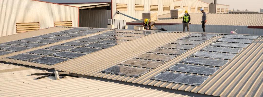 本次东鹏陶瓷项目均为彩钢瓦屋顶屋面,联盛在安装过程中除了使用传统的支架光伏板技术外,还使用了自主研发的睿模技术 。