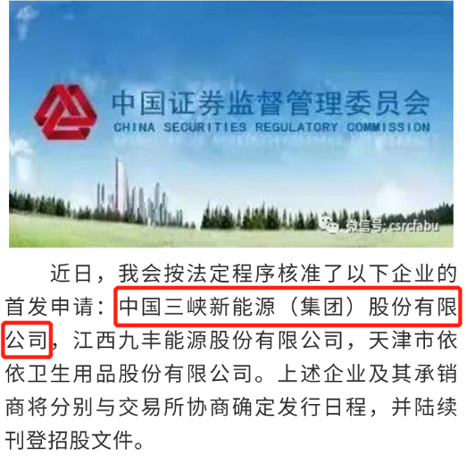 开启鸣锣倒计时!三峡新能源IPO获批!