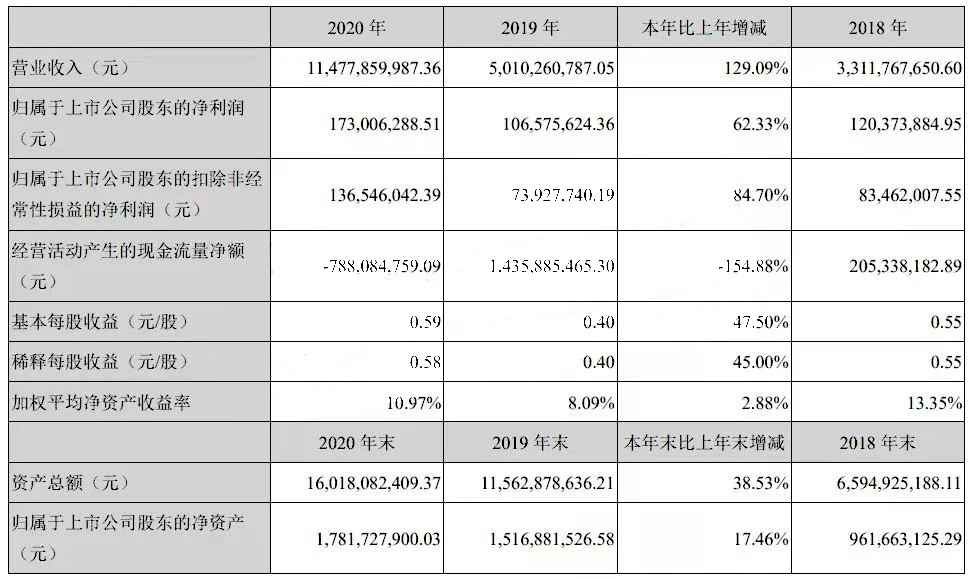 4月24日,运达股份发布年度业绩报告,报告显示:2020年归属于上市公司股东的净利润约为1.73亿元,同比增长62.33%;营业收入约为114.78亿元,同比增长129.09%。