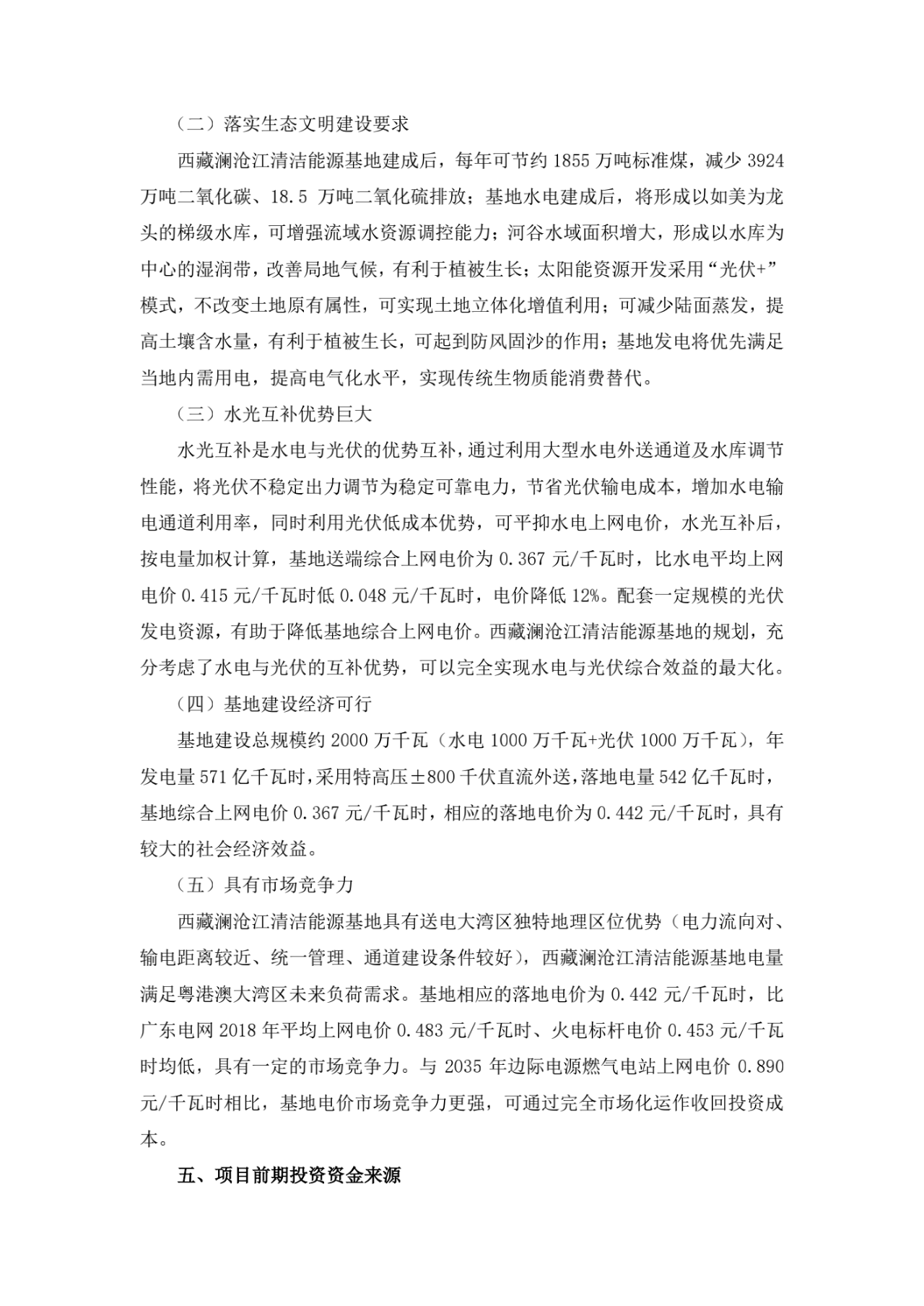在生态方面,西藏澜沧江清洁能源基地建成后,每年可节约1855万吨标准煤,减少3924万吨二氧化碳、18.5万吨二氧化硫排放;基地水电建成后,将形成以如美为龙头的梯级水库,可增强流域水资源调控能力;河谷水域面积增大,形成以水库为中心的湿润带,改善局地气候,有利于植被生长;太阳能资源开发采用“光伏+”模式,不改变土地原有属性,可实现土地立体化增值利用;可减少陆面蒸发,提高土壤含水量,有利于植被生长,可起到防风固沙的作用。