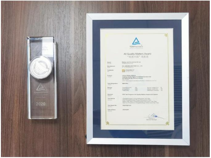 4月28日,由德国莱茵TÜV集团(以下简称“TÜV莱茵”)主办的“2021第七届质胜中国光伏盛典”在杭州西溪喜来登度假大酒店隆重召开,盛典上,双一力Golden Sigma储能户外柜荣获商用储能电池系统“质胜中国”优胜奖。