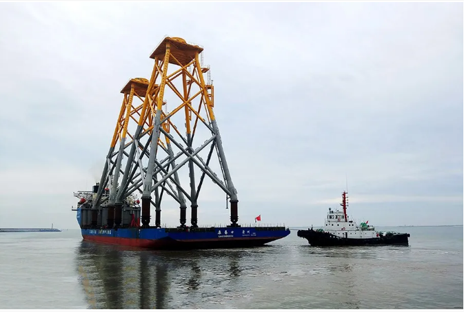 ▲ 阳江海上风电项目导管架运输