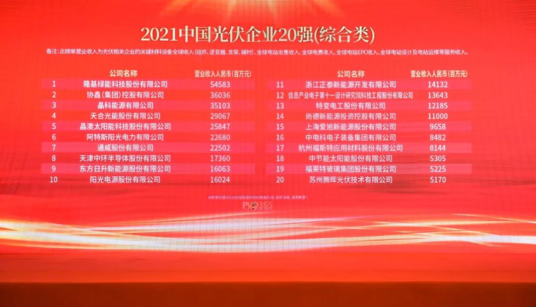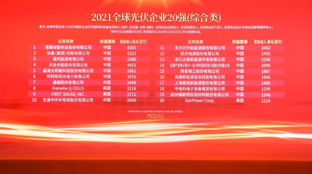 下午六场主题演讲后,2021年全球光伏20强排行榜发布会、2021年中国储能20强排行榜发布会隆重举行,十一科技因为在新能源领域的优秀业绩和行业贡献,荣获2021中国光伏电站EPC总包企业20强、2021全球光伏企业20强(综合类)和2021中国光伏企业20强三项大奖,十一能投执行经理蒋卫国、十一科技南京分院副董事长黄炎代表十一科技上台领奖。