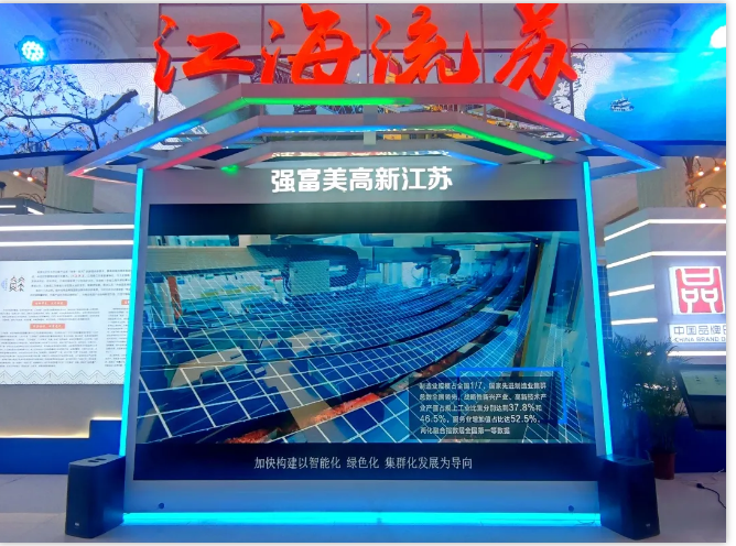 当天上午,“江海流苏” 江苏展馆线上线下同步开馆,江苏省副省长惠建林参观了展馆。“制造筑牢品牌基石”,作为“制造江苏”板块的代表,天合光能负责人向惠建林介绍了最新研发成果及智慧能源整体解决方案,表达了构建无碳新能源世界的愿景。看到天合光能始终坚持通过技术的不断创新,来促进光伏度电成本的下降,将价格实惠的清洁能源带到千家万户,惠建林对天合光能助力碳中和,构建以智能化、绿色化、集群化发展为导向的新型制造体系给予充分肯定和高度评价。