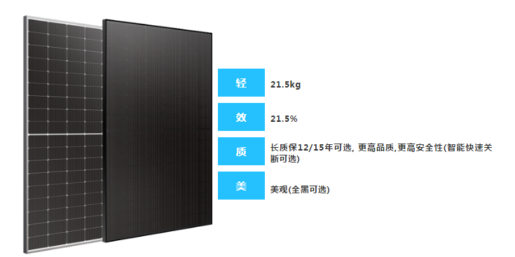 正泰ASTRO 5s高效户用组件秉承了正泰ASTRO系列组件“缔造持久高效绿色能量”的价值主张,传承ASTRO 5高效光伏组件的优良基因,在此基础上科学匹配海外户用系统安装与应用场景需求,优化版型和性能,集182mm掺镓硅片、23.2%+ PERC+高效电池、半片设计+11主栅、无损切割、30mm高强度边框、高密度封装等设计及制造工艺于一体,组件功率可达415W,效率高达21.5%,集“轻、效、质、美”于一身,是户用市场的优选配置,可广泛应用于居民屋顶。