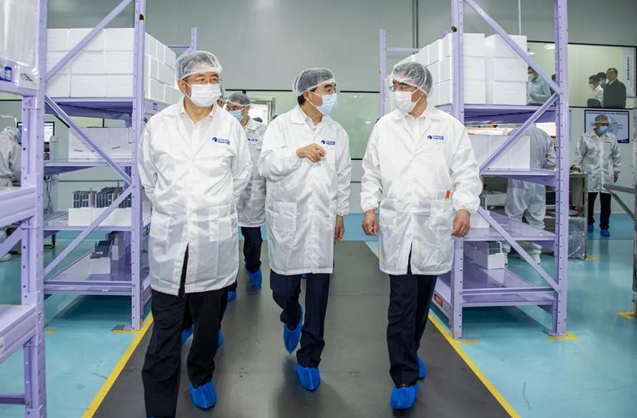 张玉卓一行参观了DW智慧工厂,详细了解了G12产品技术、性能与生产制造工艺,亲身感受了中环股份工业4.0设计理念下自动化、智能化、智慧化的柔性制造生产模式,对中环股份在产品、工艺与智能制造方面取得的成果表示赞许。