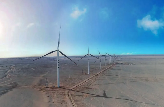 ▲坐落在海拔3000米高的青海省海西州锡铁山新能源基地的浙能海西华汇大柴旦风电站一景。