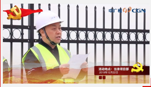 活动首先由支部副书记耿晓峥带领全体党员面对党旗重温入党誓词,牢记中国共产党的初心和使命,随后耿晓峥又为参加活动的同志宣贯了中广核新能源践行初心和使命的主要任务。