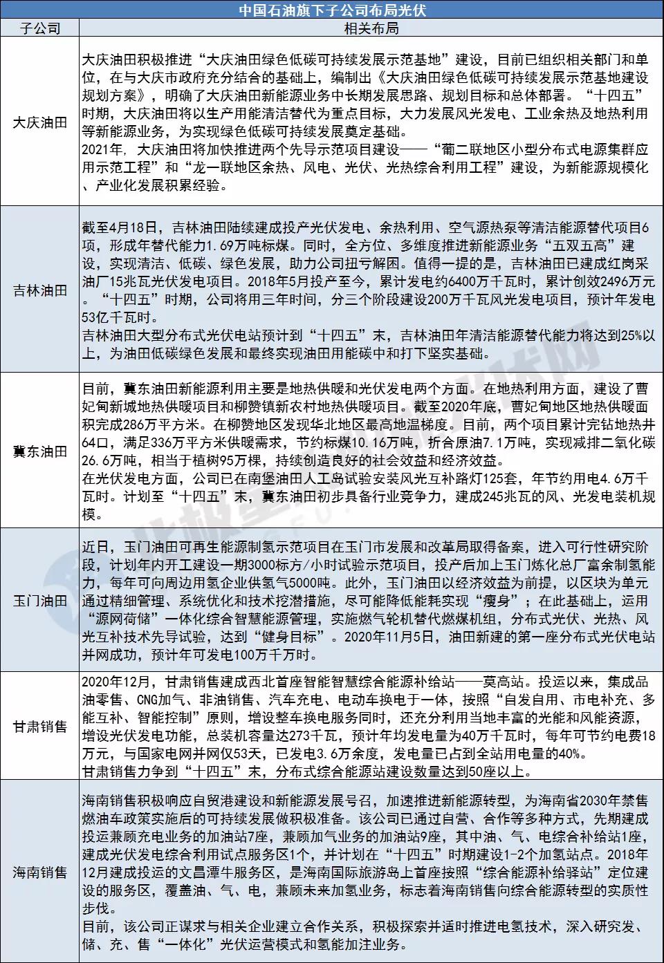 总部瞄准大方向,子公司当然反应迅速。据中国石油报道,其旗下大庆油田、吉林油田、冀东油田、玉门油田、甘肃销售、海南销售等多个子公司正在全力加速布局光伏加油站、光伏加氢站。