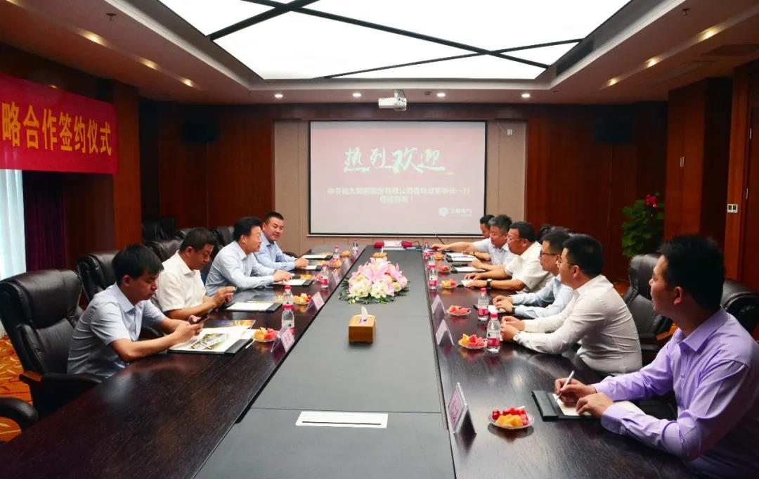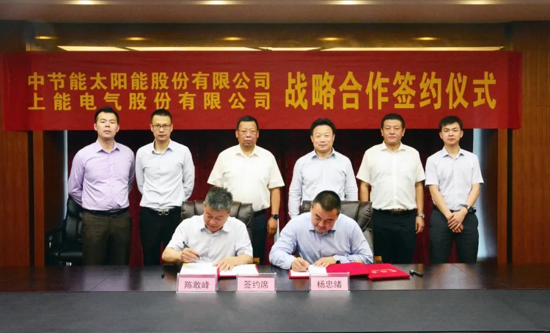 6月16日,上能电气与中节能太阳能在无锡签署战略合作协议,旨在相互促进、共赢发展。中节能太阳能股份有限公司党委书记、董事长曹华斌,副总经理杨忠绪,上能电气股份有限公司董事长吴强、常务副总裁陈敢峰等双方领导共同出席了签约仪式,并进行友好会谈。