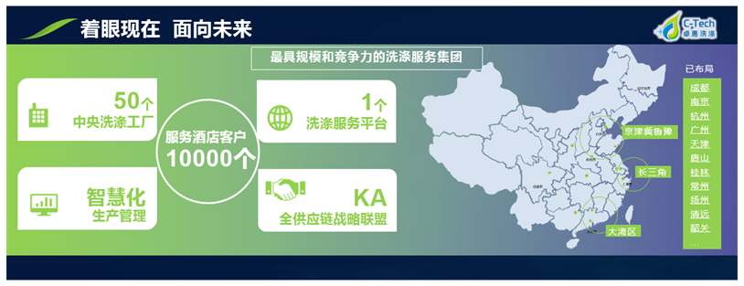 着眼现在,卓惠已经在全国8个城市建设了洗涤工厂,覆盖了成都、南京、广州、杭州、天津等12个城市。面向未来,卓惠还将继续着重深耕京津冀、长三角、大湾区,这些中国非常重要的经济开发区,建设50个中央洗涤工厂,同时将生产全面智慧化升级,整合上下游的布草、智慧零件、原料供应商,提供最优的价格,和酒店大客户集团形成KA战略联盟。