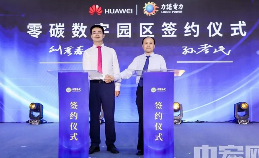 在7月1日力诺零碳数字园区启动仪式上,华为山东数字能源总经理刘彦春与力诺电力总经理孙孝民共同给出了新能源企业的响亮答案—园区2021年实现碳达峰、2022年实现碳中和!