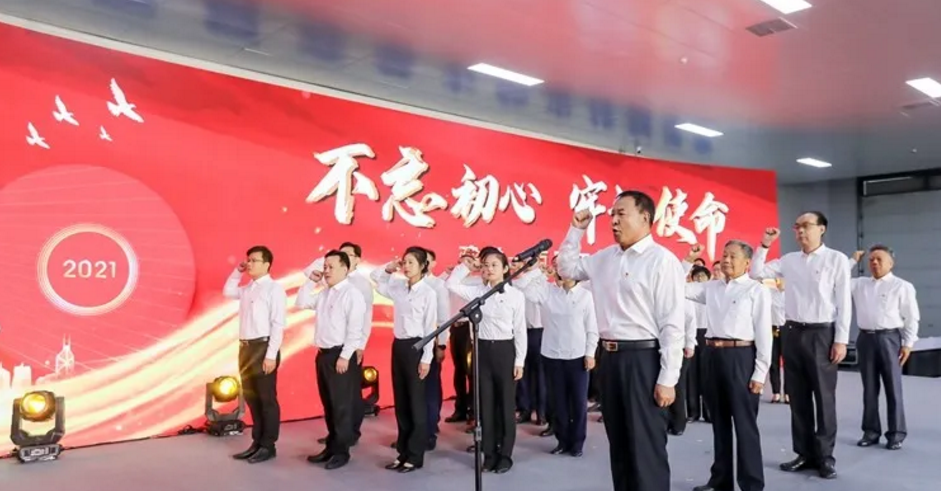 在活动伊始,全体与会嘉宾共同观看了力诺集团党建专题片,回顾了力诺集团优秀共产党员代表在平凡的工作岗位上践行党员誓言的点点滴滴。随后,与会领导、嘉宾中的中国共产党党员同志与40位党员代表一起在力诺集团党委孙庆法书记的带领下重温了入党誓词,齐声合唱了《没有共产党就没有新中国》。