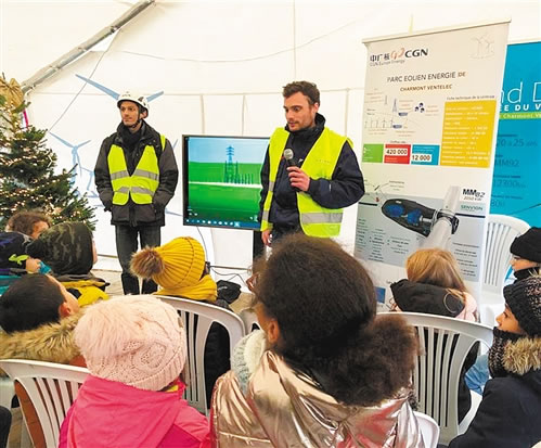 “为什么风机有三个叶片”“能源转型是什么意思”“风机发电跟别的电一样吗”?这些问题来自家住法国夏尔蒙风电场附近阿尔西斯—苏—奥博镇(Arcis sur Aube)的小学生。
