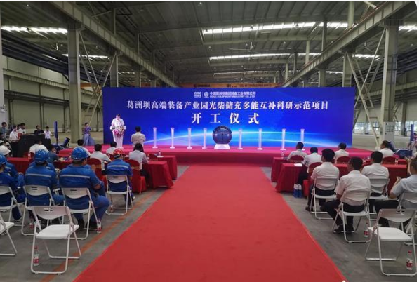 日前,在武汉东西湖区葛洲坝高端装备产业园高速机厂房内,产业园光柴储充多能互补科研示范项目举行开工仪式。