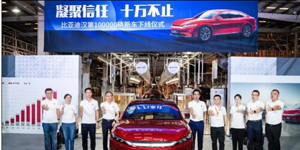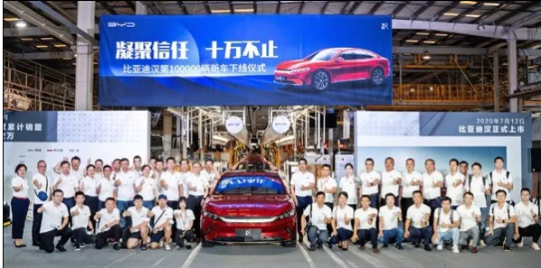 7月20日,比亚迪深圳坪山工厂正式下线了第10万辆汉新车,从2020年7月汉的上市开始算起,汉达成10万辆下线“里程碑”只用了一年的时间,一跃成为中国品牌里面最快突破10万辆量产的中大型车。创造了中国品牌中大型轿车的最快下线速度!