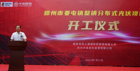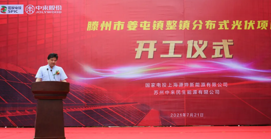 2021年7月21日,苏州中来民生能源有限公司、上海源烨新能源有限公司在滕州市姜屯镇沙东村文化广场隆重举行滕州市姜屯镇整镇分布式光伏项目开工仪式。该项目系苏州中来民生能源有限公司独立整县申报后落地的第一个整县项目,项目将由国电投旗下控股子公司上海源烨新能源有限公司投资建设,中来民生将在其于上半年与上海源烨新能源有限公司签署的EPC总承包协议项下承接姜屯镇EPC总包业务。