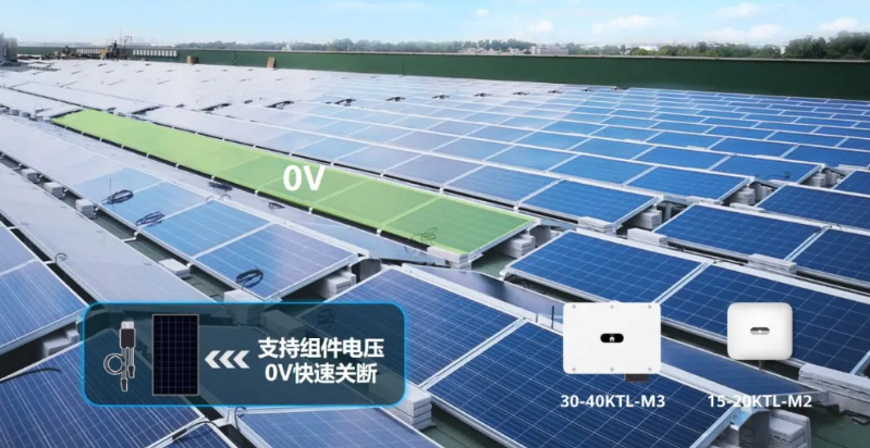 屋顶光伏项目中,传统组串式逆变器即使在停机时,只要有光照,直流侧光伏板电压通常可达到600V至1000V,为施工运维人员及业主带来潜在风险。尤其是在出现火灾等紧急状况的情况下,由于光伏阵列携带高压,救援人员无法到屋顶进行救灾;由于屋顶带电,也无法通过普通方式用水进行灭火,大大增加了救援难度。在国外,对带有光伏系统的屋顶在救灾时采取‘let it burn’策略,只能眼睁睁的看着光伏板烧毁后再进行灭火,极大的影响了救援过程,造成更多人身财产损失。