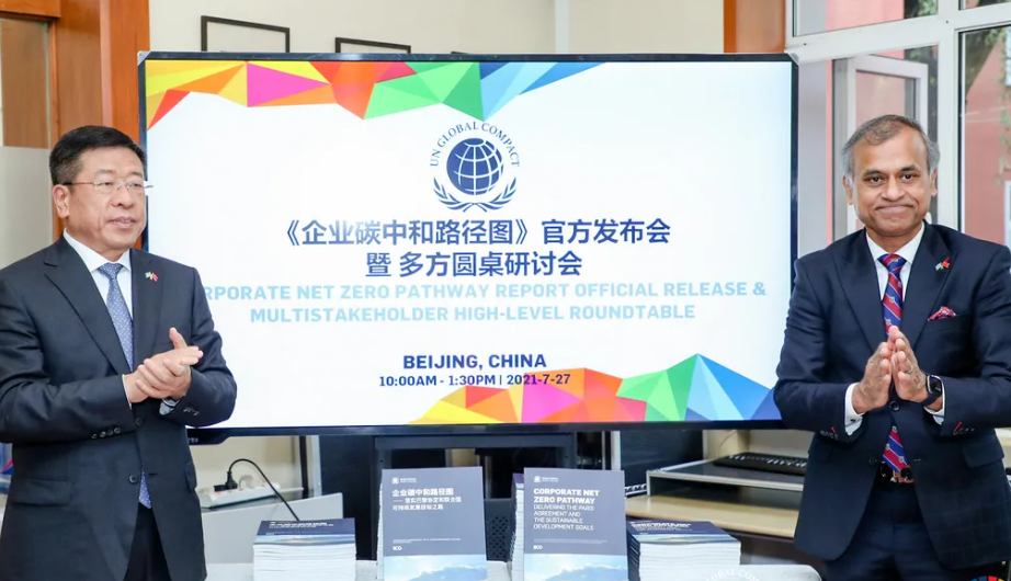 7月27日,由联合国全球契约组织(UNGC)发起的《企业碳中和路径图》发布会暨多方圆桌研讨会在联合国北京驻华代表处举行。国务院国资委副主任、联合国全球契约组织理事任洪斌,联合国驻华协调员常启德及众多政府、协会、机构、企业代表参与了此次活动。