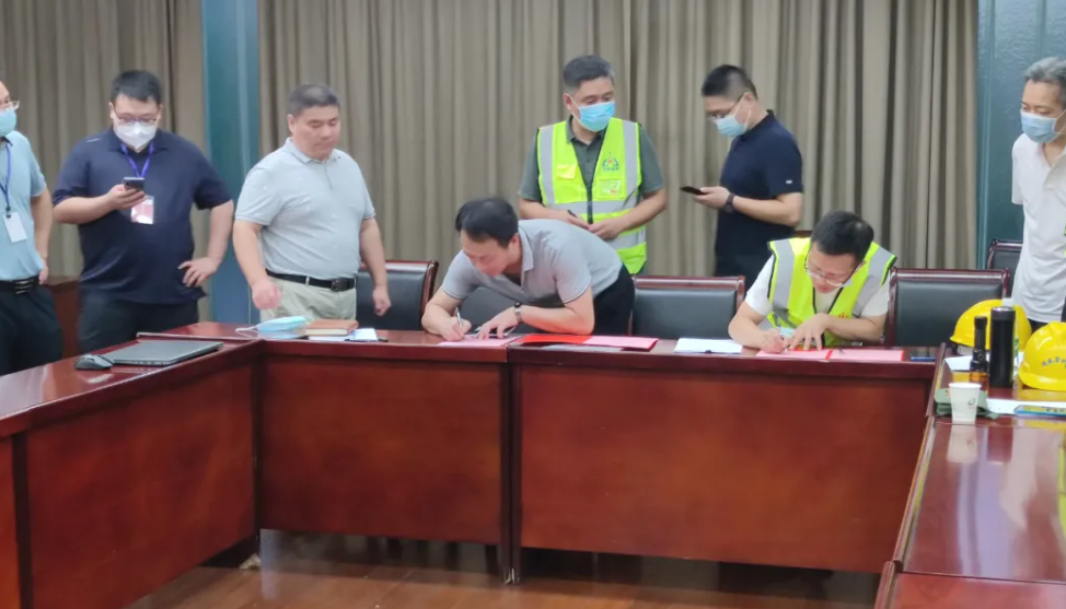 移交现场,十一科技华东分院设计团队负责人刘锴(右一)签署移交书