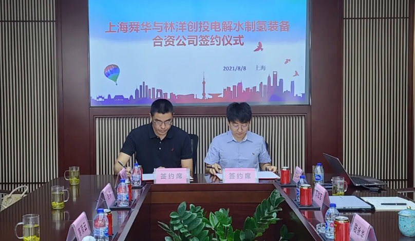2021年8月8日,在林洋能源上市十周年之际,林洋能源全资子公司林洋创业投资(上海)有限公司与上海舜华新能源系统有限公司成立合资公司的签约仪式在上海举行。上海舜华董事长高顶云,副总经理陈华强,林洋集团总裁、林洋能源董事长陆永华,林洋集团副总裁方壮志、陈金敏,林洋创投总经理娄与峰等领导,上海氢能利用工程技术研究中心常务副主任陈海林,同济大学副教授、氢能研究室主任吕洪以及中科院上海硅酸盐所等相关行业专家共同出席签约仪式。