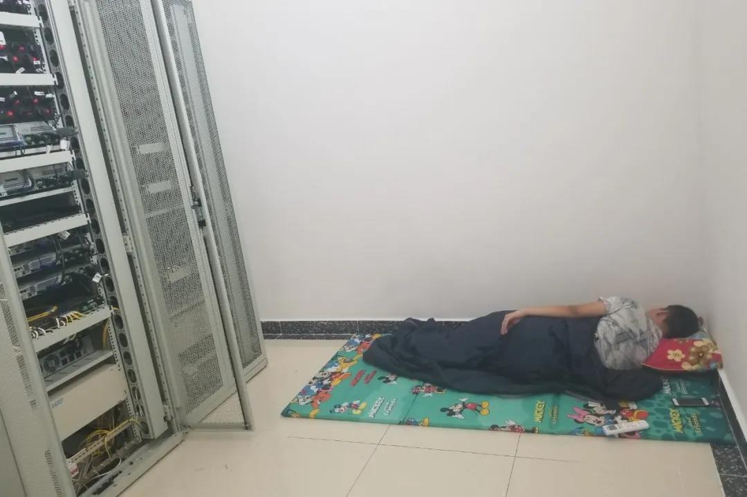 ➤机房内一条垫子一个枕头一条被子,就是一个简易的休息场所,项目员工困了就简单休息一下,有了精神立刻投入工作。