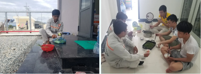 ➤自己动手解决后勤问题,项目员工变身大厨,简单的饭菜里最浓的味道是奋斗。
