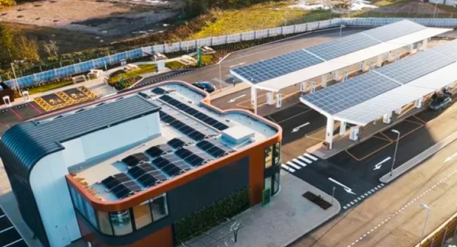 英国光储充一体化项目,系统配置1.75MW光伏系统、5MW/5MWh储能系统和7kW-350kW充电桩,通过光伏和储能联合出力,可同时满足36辆电动汽车现场充电。