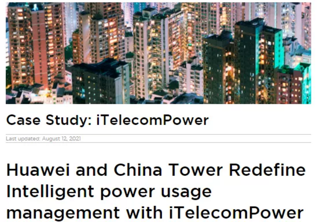 2021年初,华为站点能源联合中国铁塔在浙江开展智能用电管理创新试点,通过iTelecomPower替代现网传统电源,实现设备级能耗可视可管、精准备电节省电池投资、远程用电管理免人工下站,助力中国铁塔节能减排、降本增效。该项创新节能减排效果显著,于2021年8月12日入选GSMA(全球移动通讯系统协会)全球精品案例。