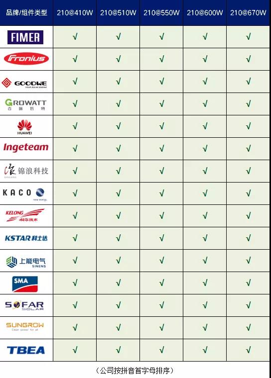 15家主流逆变器品牌全面匹配210至尊系列组件