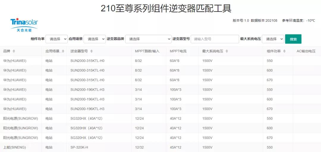 这次发布的白皮书除了包含全面的逆变器匹配数据库,还同步推出全球首个快捷匹配工具(网址:invertertool.trinasolar.com)。通过系统化数据处理,为客户提供多样化的逆变器信息,并且帮助客户一键搜索出理想的逆变器产品。