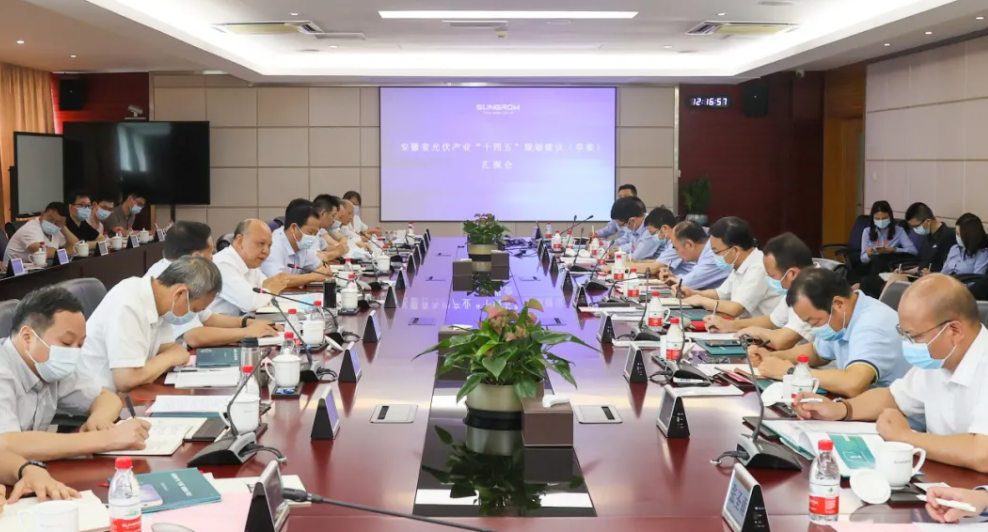 8月21日,安徽省副省长李建中、省政府副秘书长刘定明等一行到访阳光电源,调研公司科技创新、生产经营等各项工作运行情况,并与阳光电源董事长曹仁贤,阳光电源副董事长、阳光新能源总裁张许成亲切座谈,双方就进一步加快“十四五”期间全省光伏产业发展进行深入交流。