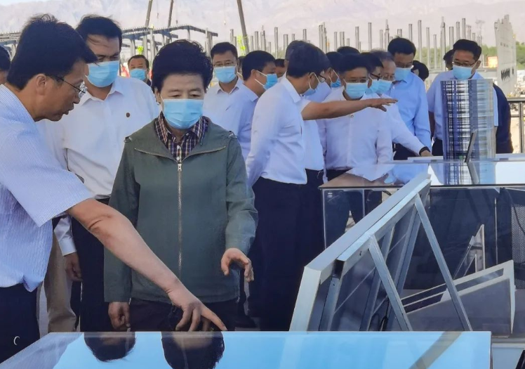 2021年8月25日,宁夏回族自治区全区推进黄河流域生态保护和高质量发展先行区建设第五次推进会北线观摩团深入宁夏中环光伏材料有限公司实地观摩,自治区党委副书记、自治区主席咸辉带队,中环半导体副总经理杨永生接待。