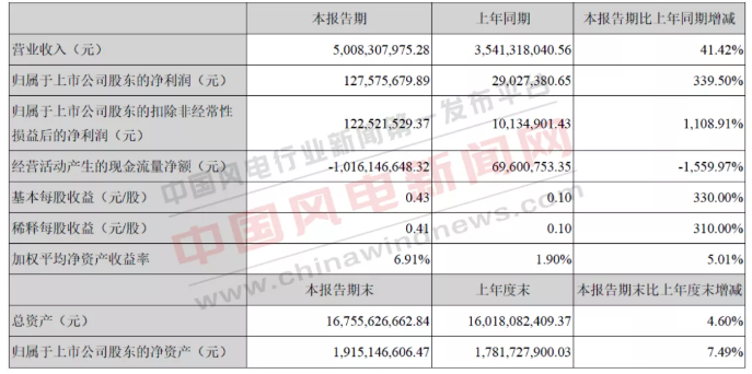 8月28日,运达股份发布半年报,报告期内,公司营业收入50.08亿元,同比上升41.42%;实现归属于上市公司股东的净利润1.28亿元,同比上升339.50%。