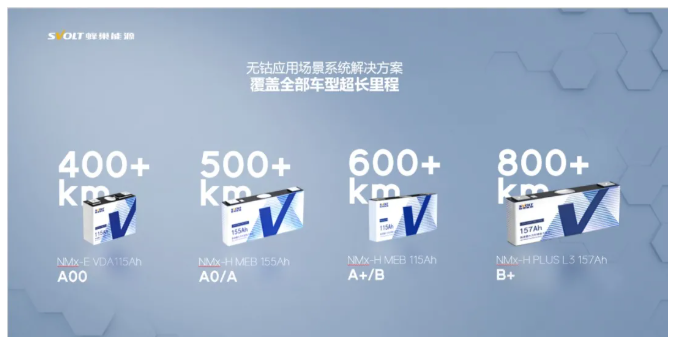 无钴电池的产品规划上,蜂巢能源推出H平台和E平台共4款产品, 可以覆盖从A00到B+级的所有车型上,支持续航可满足从400+到800+公里。