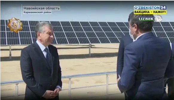 乌兹别克斯坦总统沙夫卡特·米尔济约耶夫先生亲临项目现场启动并网仪式。总统先生表示:“该电站是迈出的第一步,可以说是乌兹别克斯坦新能源系统的第一次整合,标志着行业发展进入一个全新阶段,它将每年生产252万千瓦时的电力,这将节省8000万立方米的天然气,并减少向大气中排放160吨温室气体”。除此之外,总统先生对未来乌兹别克斯坦的新能源发展做出了重要规划,表示:“未来5年将启动19个65亿美元的项目,新增装机容量1.15万兆瓦。到2030年,可再生能源发电占比将超过30%”。