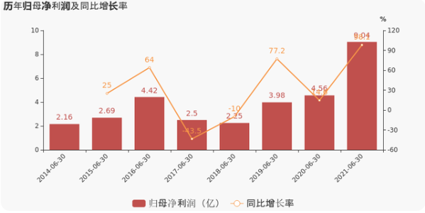 据福斯特消息:福斯特2021上半年实现营业总收入57.2亿,同比增长69.3%;实现归母净利润9亿,同比增长98.1%;每股收益为0.98元。