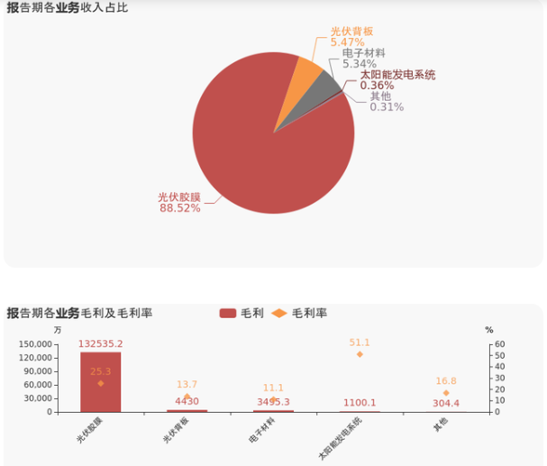本期“光伏胶膜”营收贡献较大