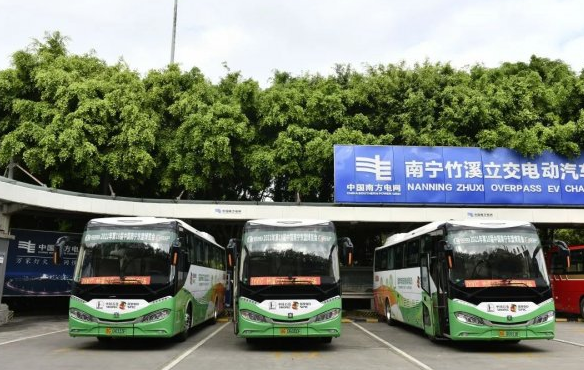 2021年9月7日,国家电投4台氢燃料电池大巴首次亮相广西南宁,推动形成广西首条氢能公交专线,在东盟博览会期间助力广西“绿电”交通建设。国家电投氢能公交专线首末站为竹溪立交至朝阳广场,营运时间为7:00—19:00,每日往返30个班次,线路实行免费乘坐,方便广大市民参观东盟博览会。
