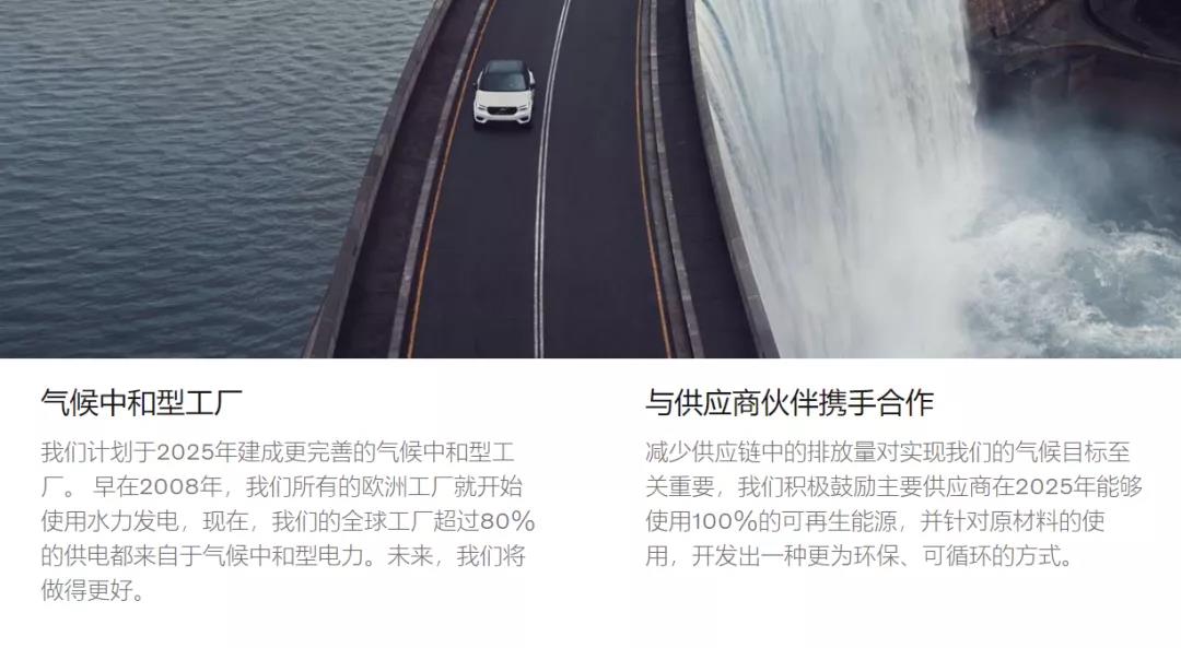 以沃尔沃汽车为例,对外公布的可持续发展愿景,明确了2025年建成更完善的气候中和型工厂,2040年实现气候中和,打造循环经济下的商业模式。同时,也积极鼓励主要供应商在2025年能够使用100%的可再生能源。