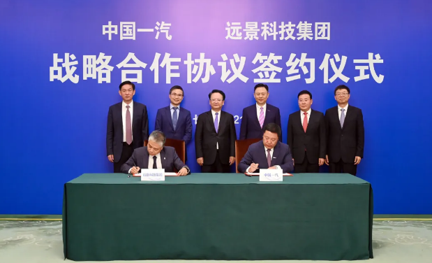 9月28日,远景科技集团与中国第一汽车集团签署战略合作协议,将围绕绿色出行、绿色能源、高端动力电池、零碳产业园、可再生能源系统等多个领域开展深入合作,秉承双方在交通、能源、数字化等领域的技术优势,推动电动交通网络与新能源网络融合,打造绿色汽车产业生态,为中国和全球的零碳转型做出贡献。吉林省委书记景俊海会见张雷并见证了战略合作签署。