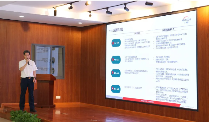 中信博财务总经理、SAP项目经理荆锁龙表示:“我们目前已打通了OA、PLM、报价、MES、条码等周边系统与SAP之间的信息壁垒,同时也通过物料主数据维护、销售业务与财务集成、采购业务和财务集成、生产业务和财务集成等方面进一步阐述了业财一体化管理。SAP业务流程逻辑十分严谨、对公司日常管理提了更高的要求,各部门必须严格按照流程执行,保证每一个关键业务节点的数据质量,财务方能及时如实反映公司的资产状况和经营成果,相信在中信博SAP云ERP项目的加持下,公司在各个方面将会取得更大的成就和突破。”