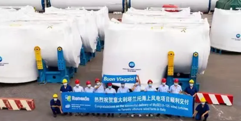 9月底,Chipol Changan货船载着明阳智能的海上风机已运抵意大利塔兰托港口,这批风机将安装在意大利Taranto 30MW海上风电场。