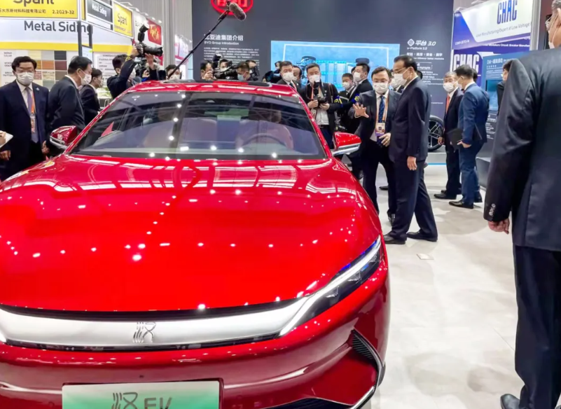在新能源展厅,比亚迪总裁王传福向总理详细介绍了比亚迪近期业务概况以及比亚迪刀片电池、DM-i超级混动、e平台3.0、比亚迪半导体等颠覆性技术成果。总理听取了介绍并鼓励企业抓住机遇,勇于面对市场竞争,遵循市场原则和商业规则,不断提升研发投入和科技创新水平,引领行业创新,促进绿色发展。