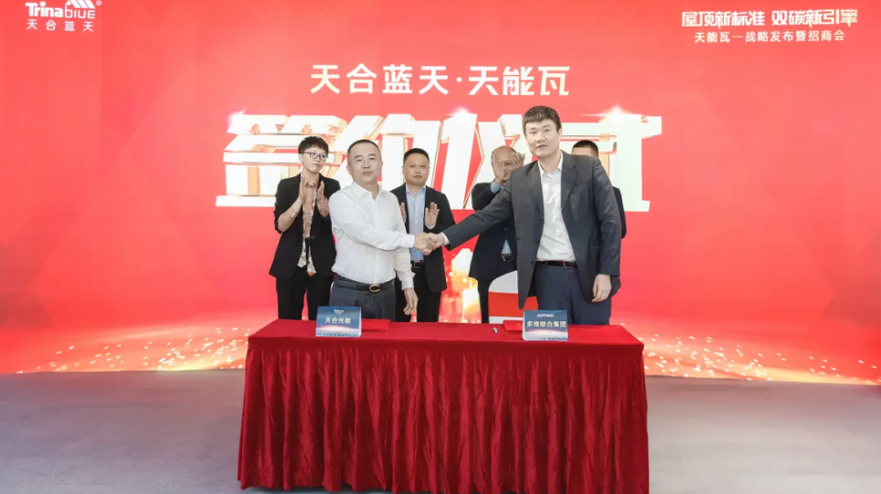 事实上,类似多维这样的战略合作并非个案,自6月整县推进战略发布以来,天合光能就已先后与国电投(河南)综合智慧能源、贵州燃气、常州戚铁建设、大唐林州热电、章丘市龙山街道等众多合作伙伴陆续完成签约,而在数天前的郑州战略招商会上,天能瓦更是受到行业高度认可与关注,现场即完成签约11家合作加盟商。