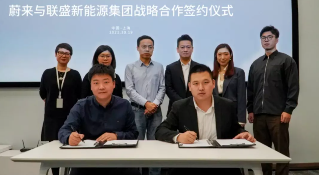 10月19日,联盛新能源与蔚来战略合作签约仪式在蔚来总部举办,蔚来能源高级副总裁沈斐、电网集成解决方案负责人刘隽、联盛新能源集团CEO郝鹏、市场总监李欣京、CEO助理郭抒昂出席了签约仪式。