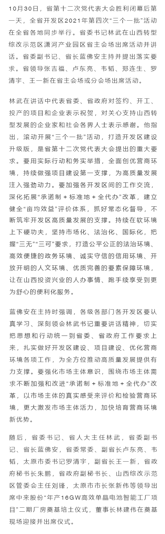 筑梦新征程!中来股份“年产16GW高效单晶电池智能工厂项目”二期厂房开工奠基