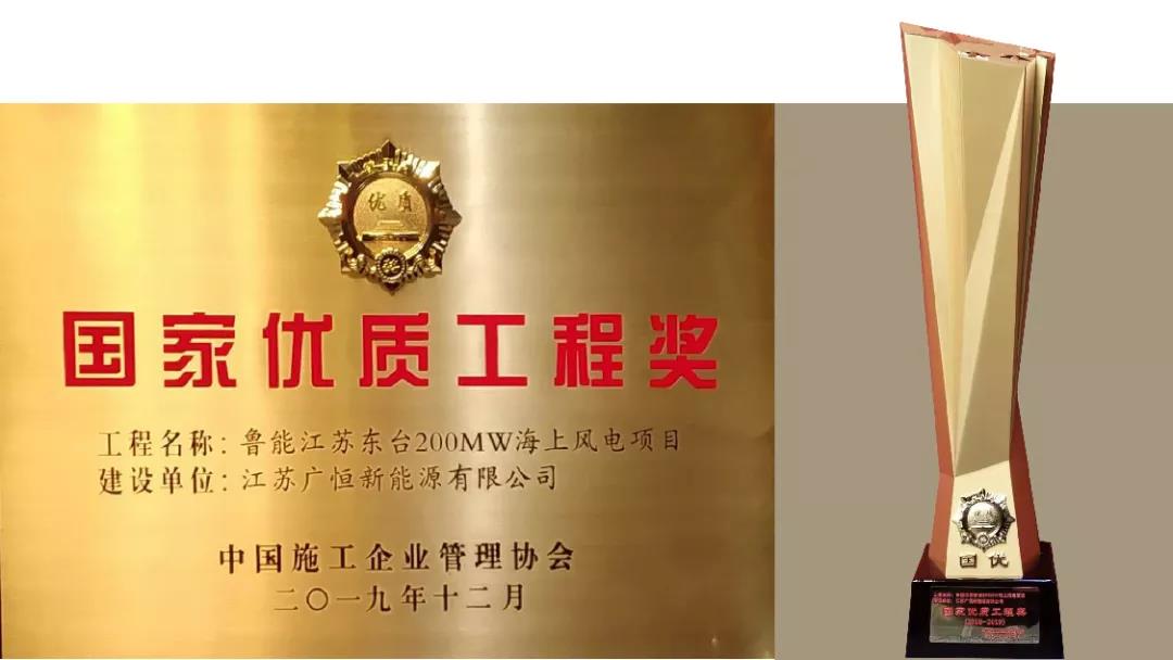 鲁能江苏东台200MW海上风电项目荣获“国家优质工程奖”