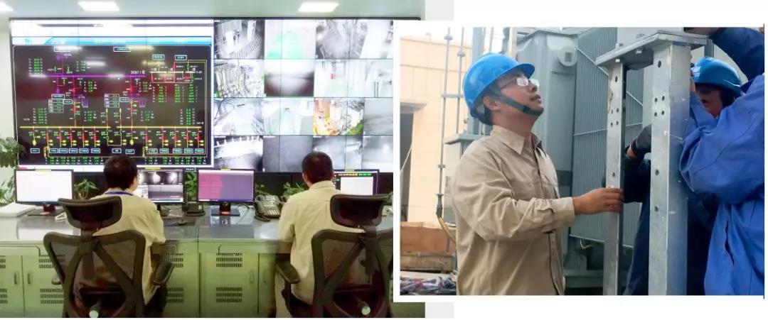 △项目工作人员在陆上集控中心监测设备运行及监督变压器、高压电抗器安装。
