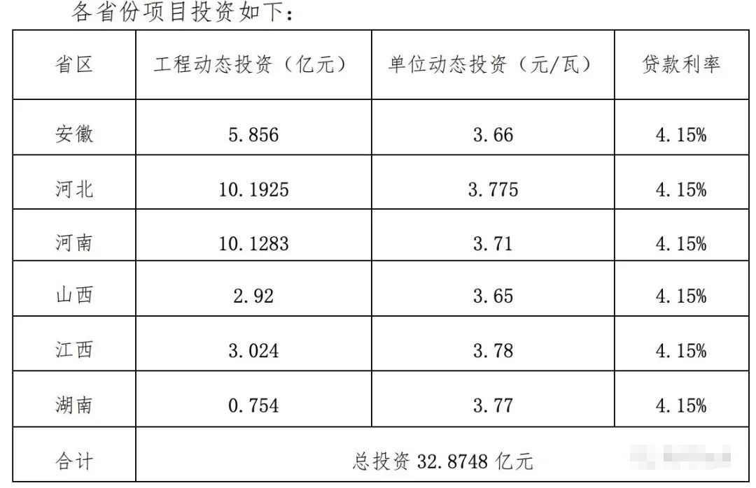 具体来看,安徽、河北、河南、山西、江西和湖南项目的工程动态投资分别是5.86亿元、10.19亿元、10.13亿元、2.92亿元、3.02亿元和0.75亿元;资本金内部收益率分别是11.83%、12.01%、11.81%、11.99%、12.22%和12.28%;投资回收期分别是12.18年、12.28年、12.02年、11.99年、11.93年和11.91年。